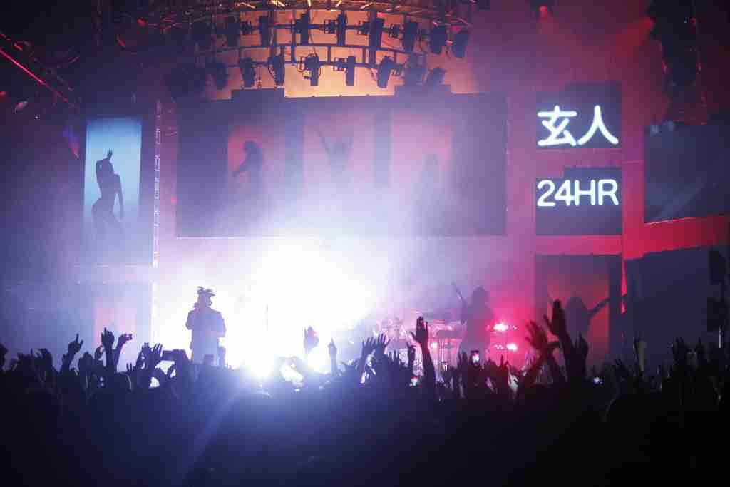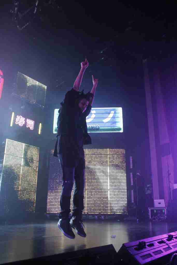 Performing almost every song of his new “Kiss Land” album, which debuted at No.2 on the Billboard 200 list — The Weeknd transited over the Japanese themes to his performance, quick infomercials of Japanese hotlines and hentai characters served as transition pieces as he moved from one song to another.
