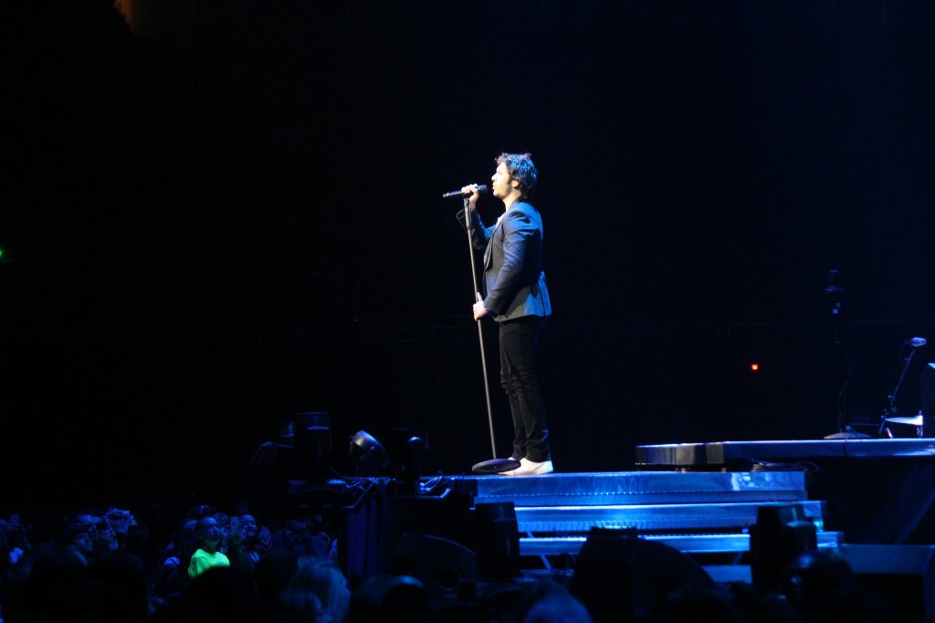 The arena exploded with loud cheer as the lights dimmed and Groban made his way to the stage to begin the show.