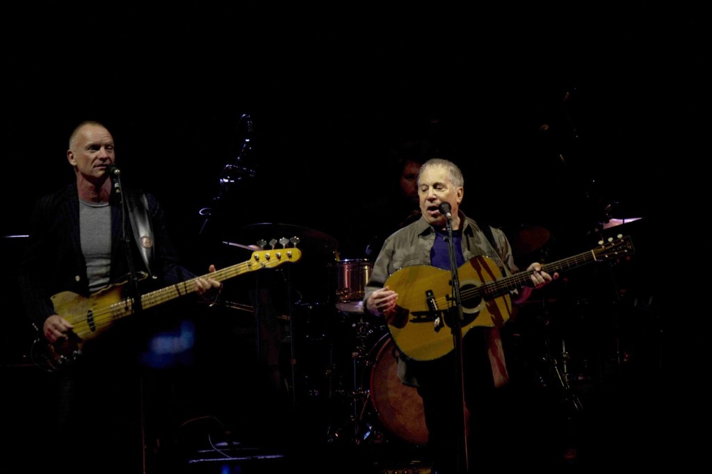 While the union did spend some time together on stage together, two-thirds of the show each artist was on stage alone with their respective bands. As they rotated on and offstage, singing together between mini sets one could see the differences in the two style. Simon and Sting opened the show together with “Brand New Day” and “Boy in the Bubble,” and closed the show with a four-song encore — “Bridge Over Troubled Water,” “Every Breath You Take,” “Late in the Evening” and “When Will I Be Loved?.”