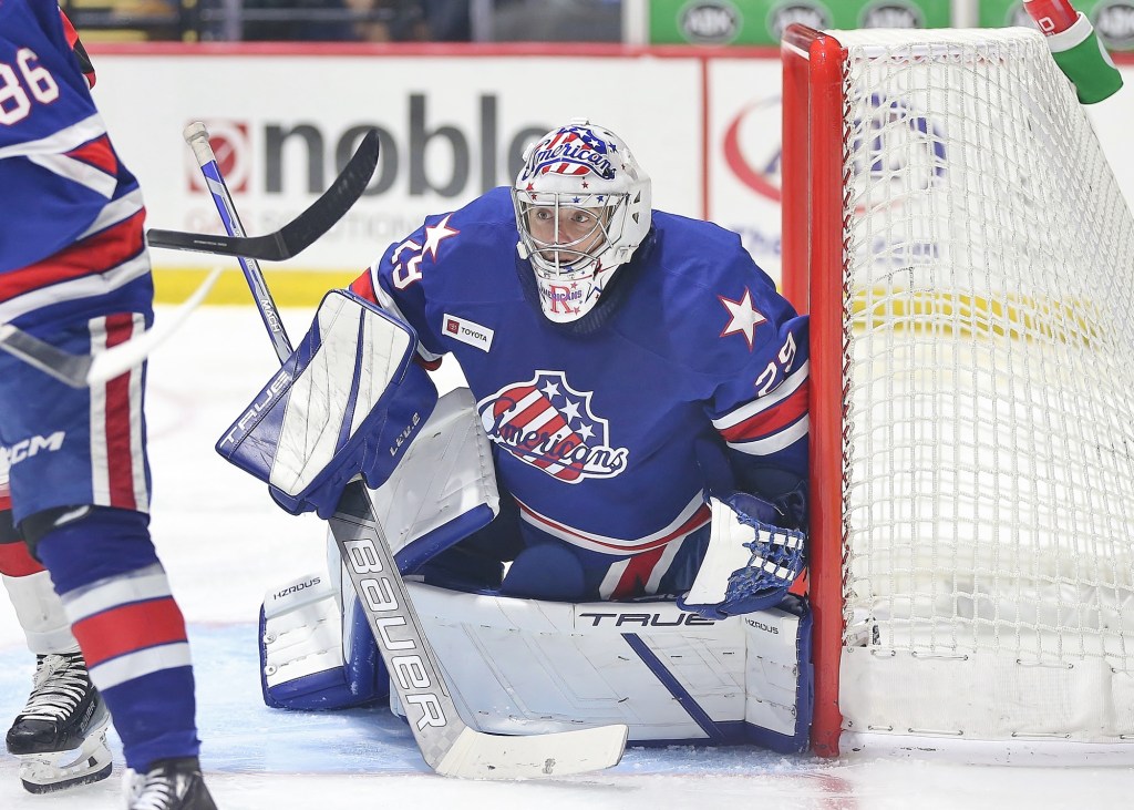 The Amerks net protector Michael Houser stopped 19 of the 20 shots he faced while the opponent goalie had to face 40 shots.