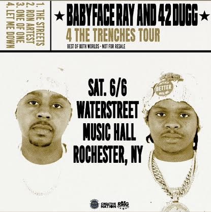 Saturday June 6 2026 42 Dugg “4 The Trenches Tour” with Babyface Ray is headed to Water Street Music Hall.